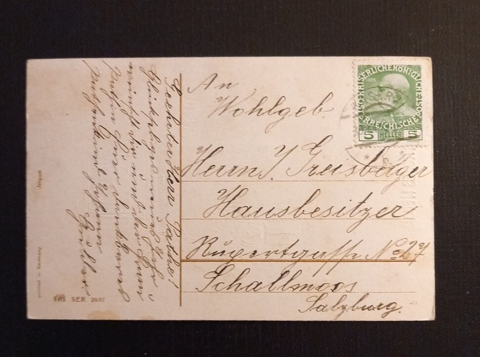 Frohes Neujahr Zwei Mädchen Mit Klee Und Laterne Prägekarte 600762A Ga G