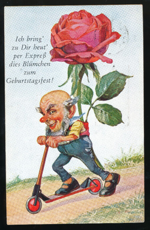 Glückwunsch - Karte zum Geburtstag Zwerg mit Rose (5638)