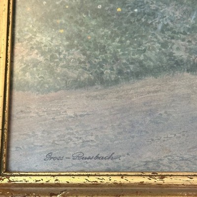 Das Werk zeigt eine stimmungsvolle Darstellung des Ortes in fein ausgearbeiteter Aquarelltechnik. Viele schöne Details wie Natursteinmauer, Treppe, Kirchenportal und die ruhige Landschaft verleihen dem Bild eine besondere Atmosphäre.