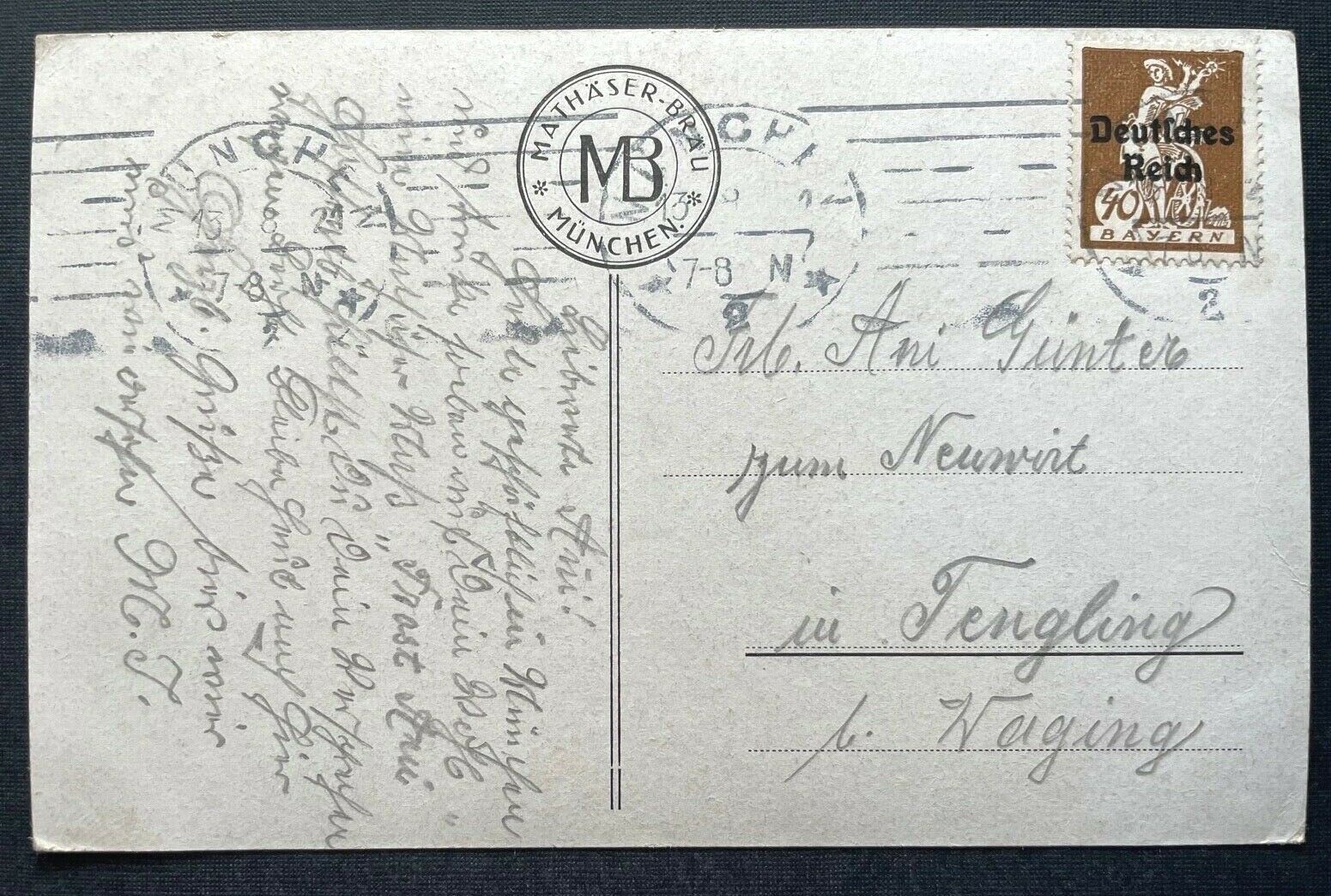 Gruss v. Mathäser Bräu München Bierkrug Tracht Bayern Deutschland 410723
