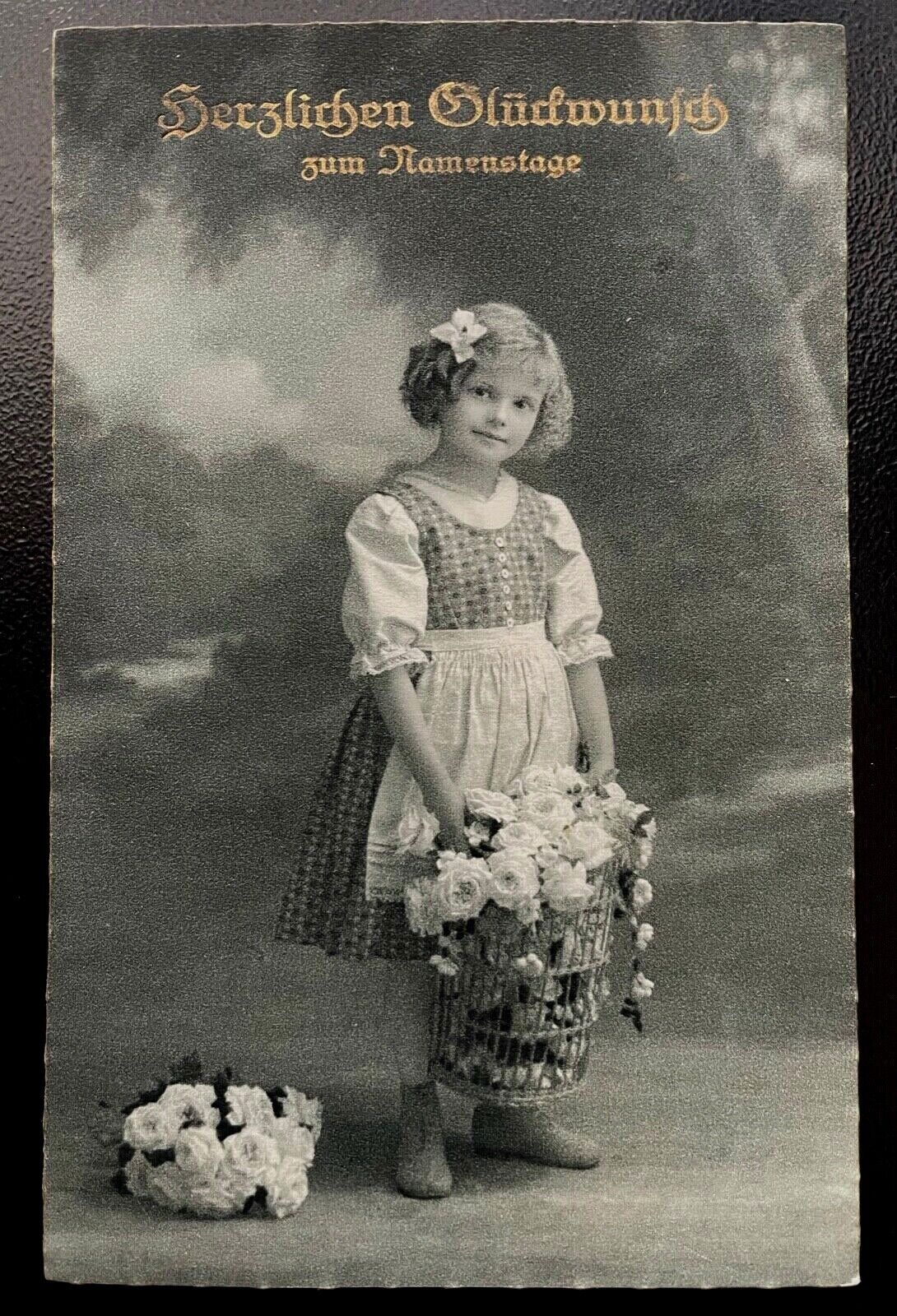 Herzlichen Glückwunsch zum Namenstage Mädchen Kind Korb Blumen Kleid 402494 TH