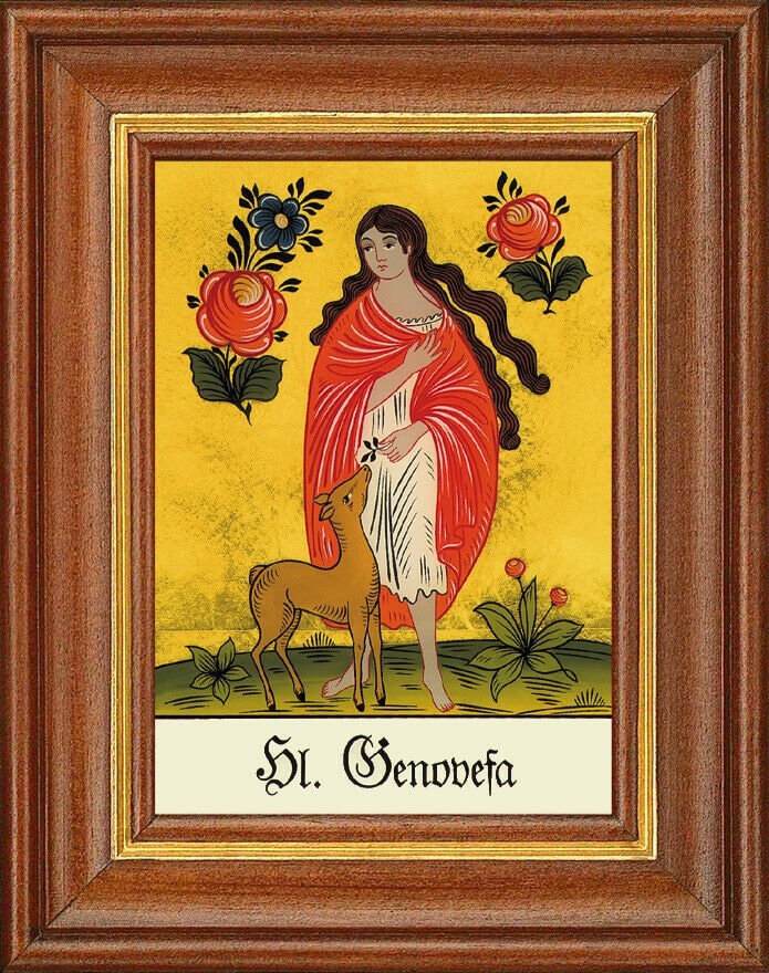 Hinterglasbild - heilige genovefa - patronatsbild taufe namenspatron 12,7x16