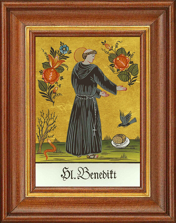 Ganz in der Tradition der Hinterglasmalkunst des 18. Jahrhunderts, wird der Bild-Hintergrund entweder mit 24 karätigem Blattgold hinterlegt.