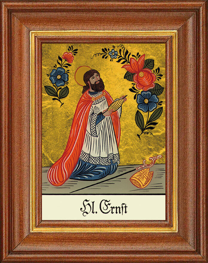 Hinterglasbild - Heiliger Ernst - Patronatsbild Taufe Namenspatron 12,7x16