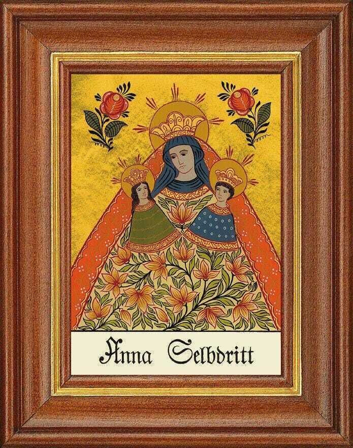 Hinterglasbild - hl.anna selbdritt - patronatsbild taufe namenspatron 12,7x16 th