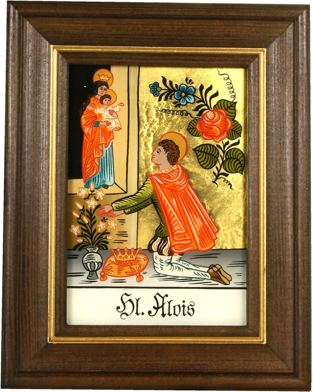Hinterglaswerkstätten - Hinterglasbild/Patronatsbild Hl. Alois mit braun