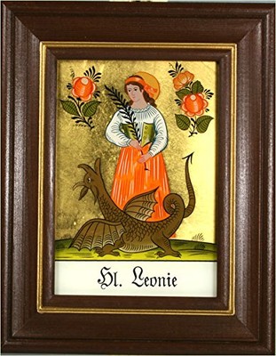 Hinterglaswerkstätten - Hinterglasbild / Patronatsbild Hl. Leonie mit braun