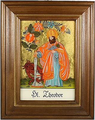 Hinterglaswerkstätten - Hinterglasbild / Patronatsbild Hl. Theodor mit braun