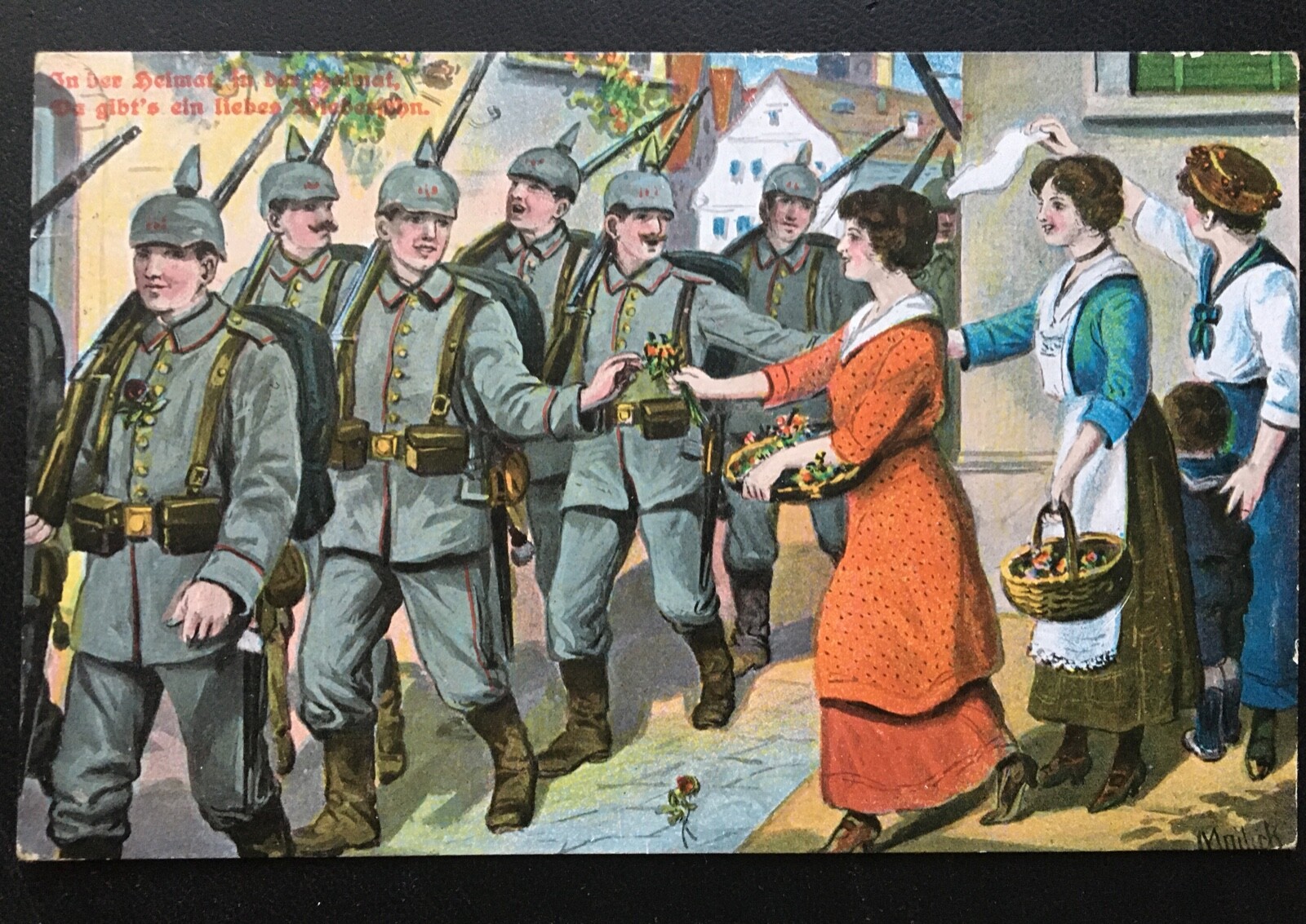 In der Heimat - Frauen verteilen Blumen - Soldaten Militär Krieg 400635 TH