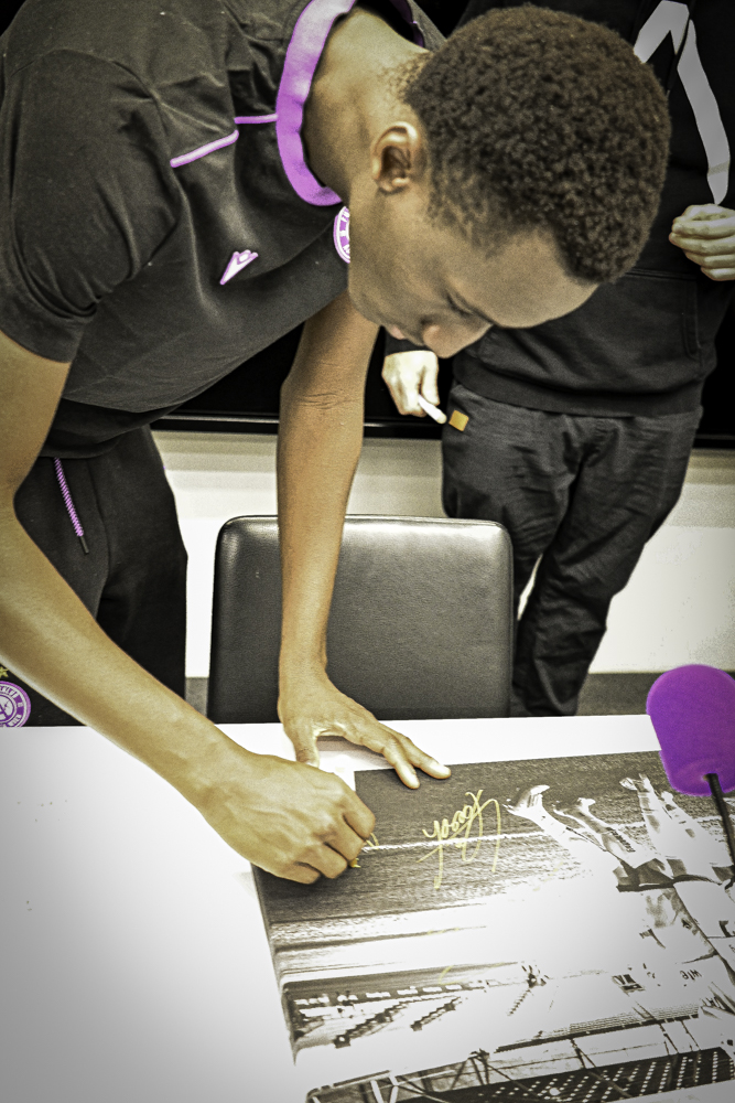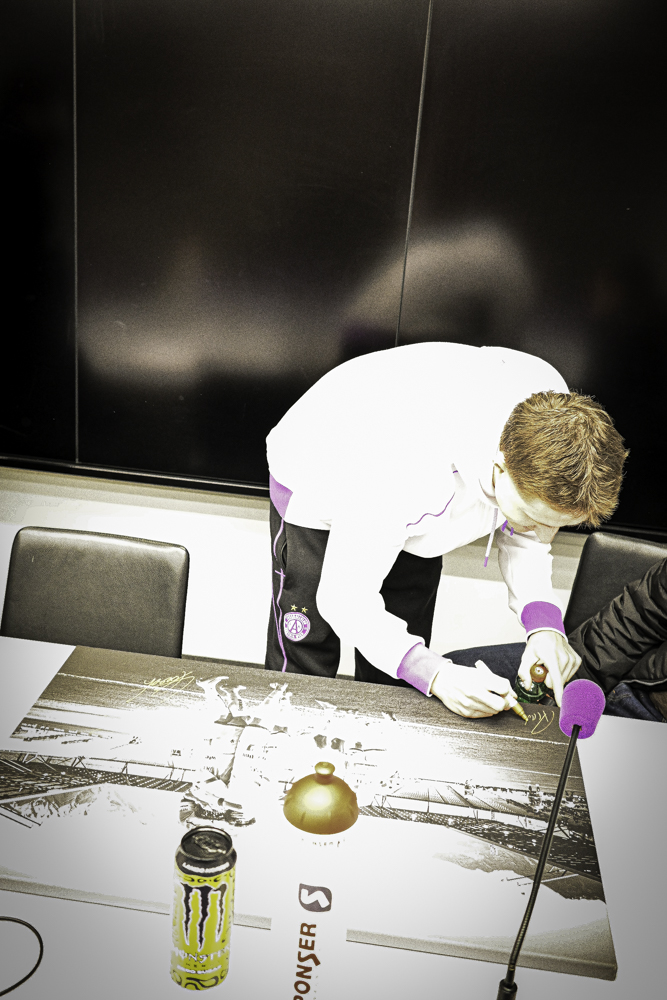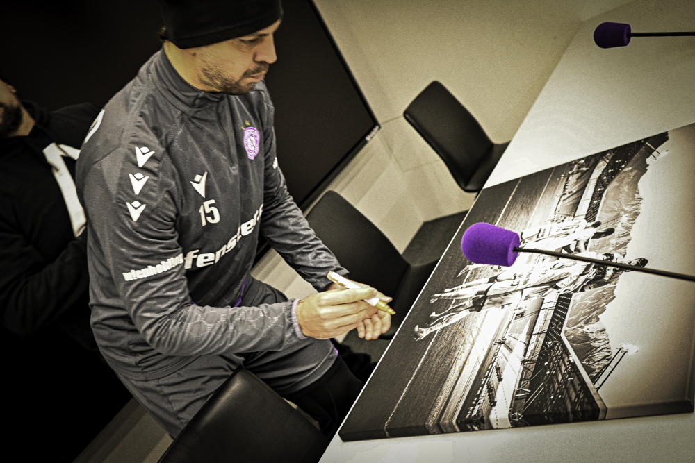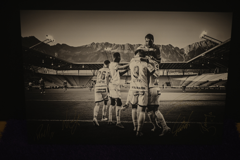 Jubel - Foto vom Torjubel beim Spiel in Innsbruck inkl. aller Unterschriften - Fine Art Print auf Leinwand (90x60)
