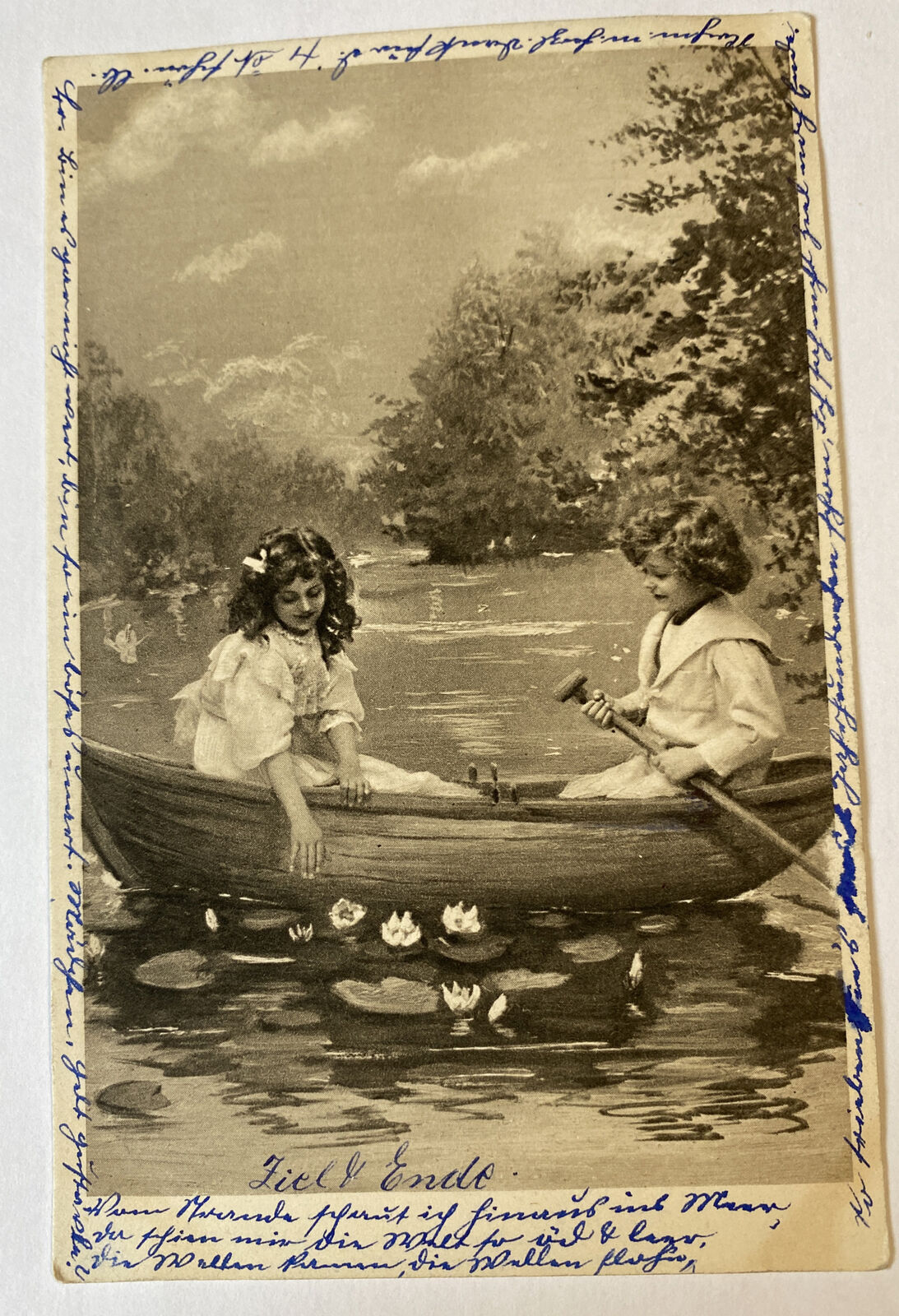 Kinder Blumen See Bootsfahrt um 1907 84018