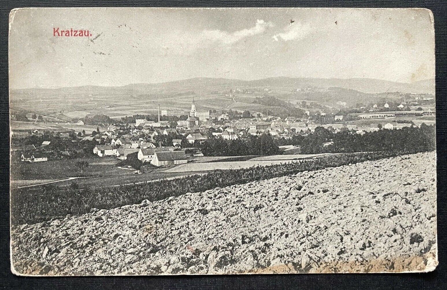 Kratzau Chrastav Stadt Ansicht Kirche Gebäude Feld Berg Tschechien 410124 TH C