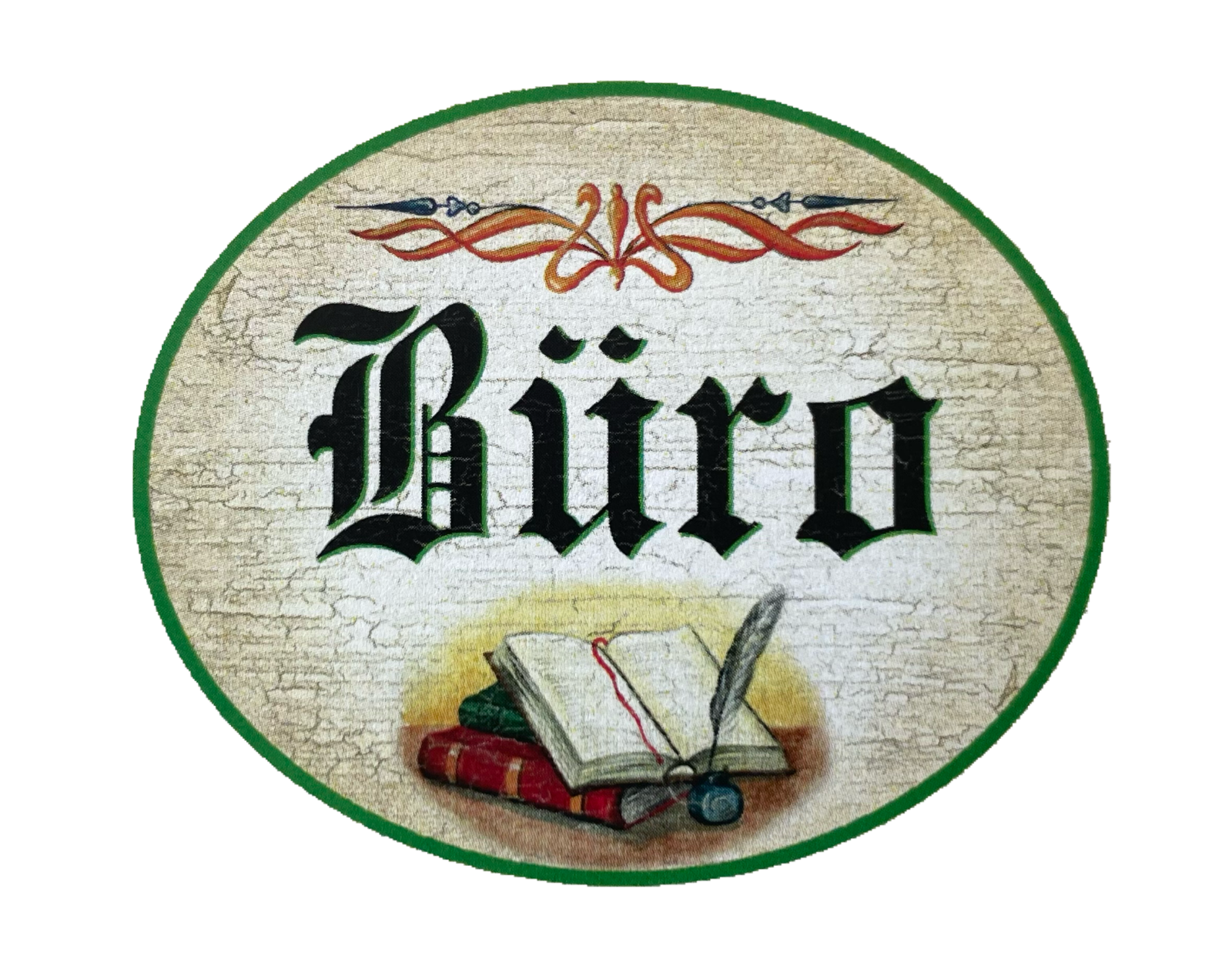 KuK Nostalgie Holzschild “Büro“ Buch Bücher Feder Ornament Office