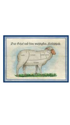 Kuk nostalgie holzschild "das schaf und seine fleischteile"