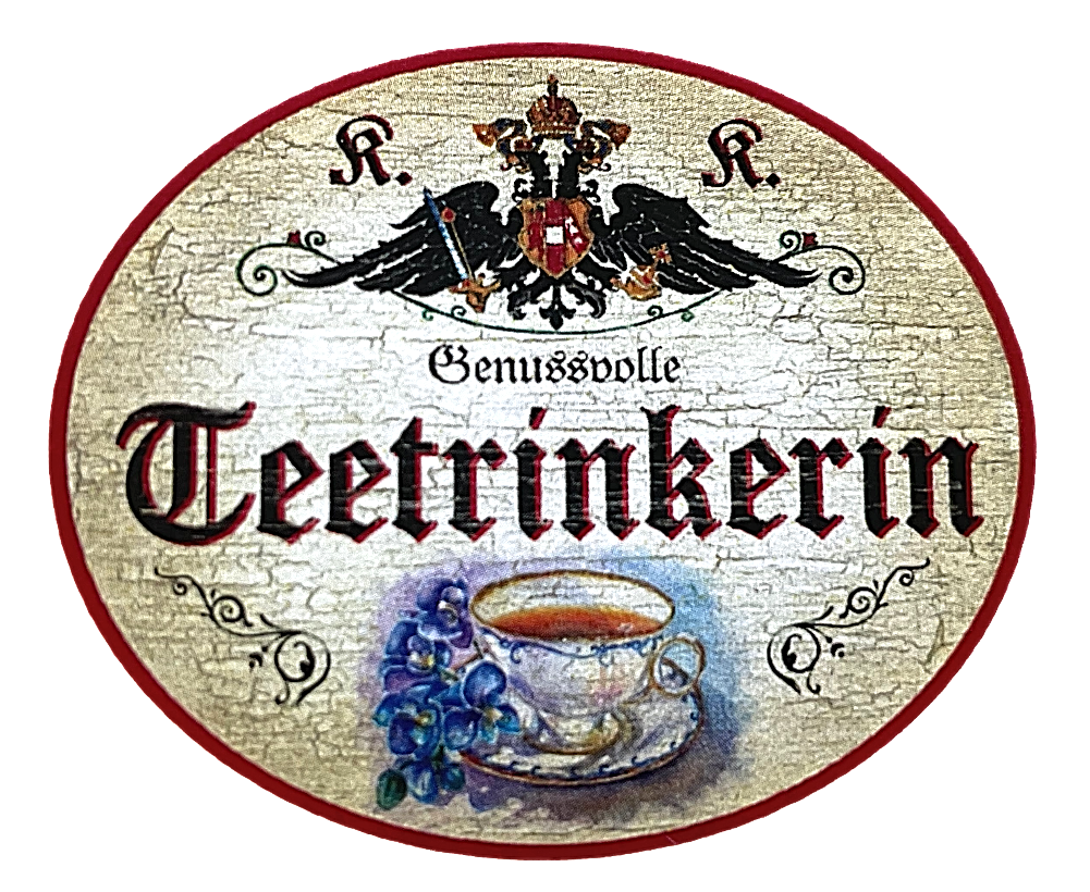 KuK Nostalgie Holzschild "Genussvolle Teetrinkerin" Teetasse