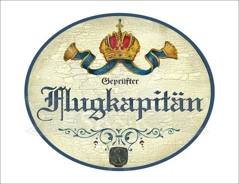 KuK Nostalgie Holzschild - Geprüfter Flugkapitän - Höhenmesser Krone TH