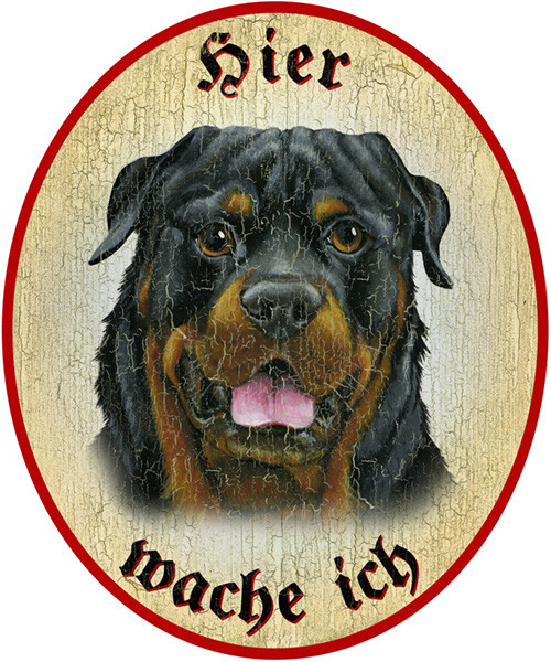 KuK Nostalgie Holzschild "Hier wache ich" Rottweiler Hund