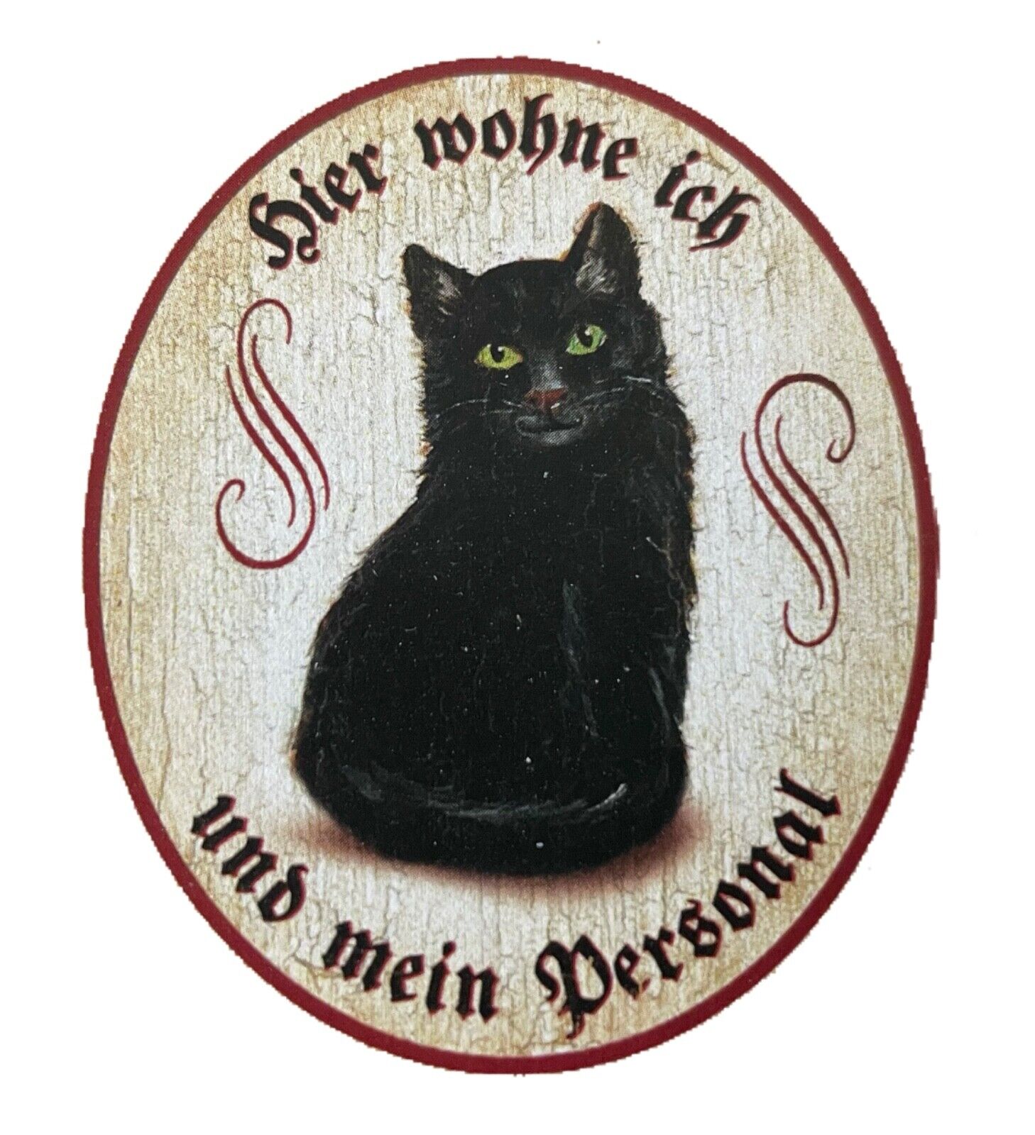KuK Nostalgie Holzschild "Hier wohne ich und mein Personal“ Katze Schwarz