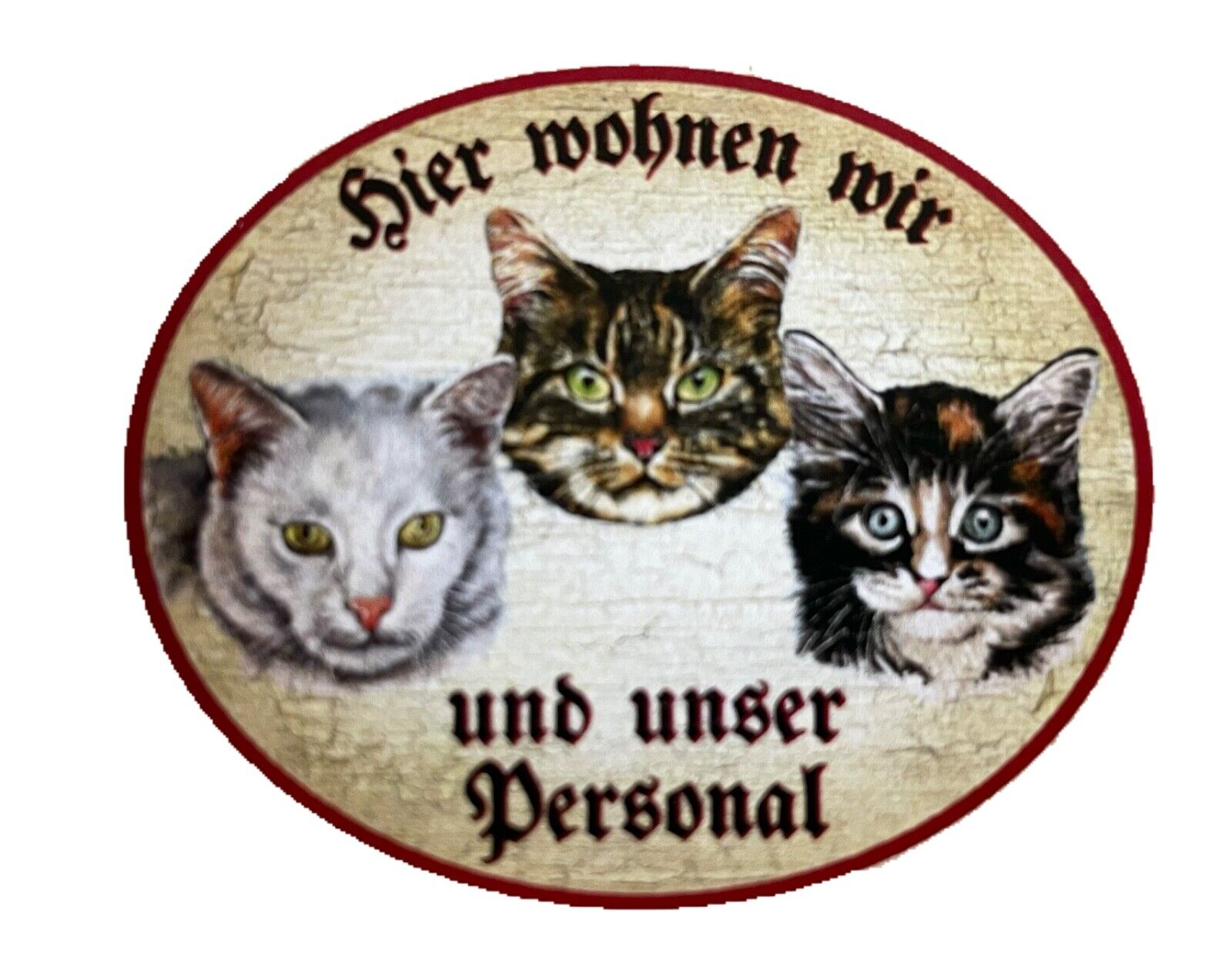KuK Nostalgie Holzschild "Hier wohne ich und mein Personal“ Katze SW Junges