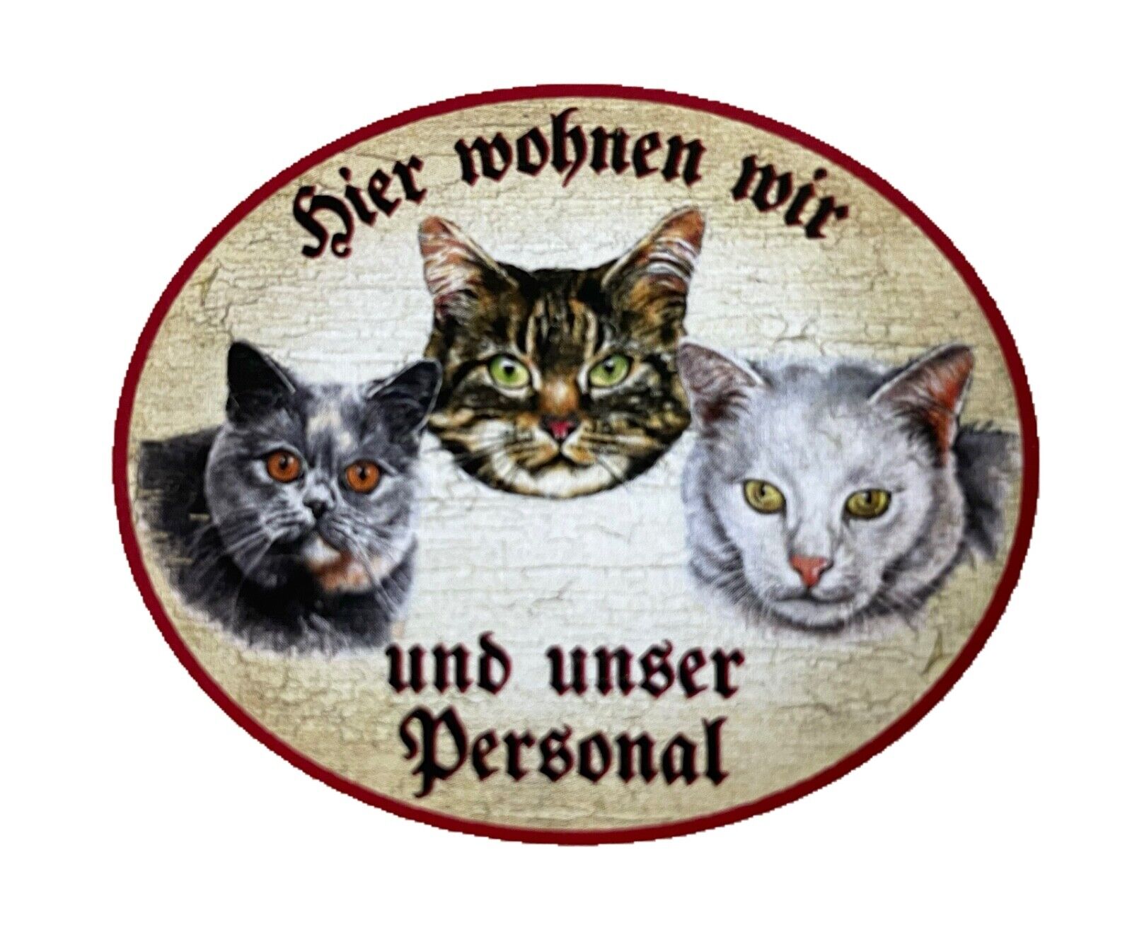 KuK Nostalgie Holzschild "Hier wohnen wir u.u. Personal“ Katze Hund Duo
