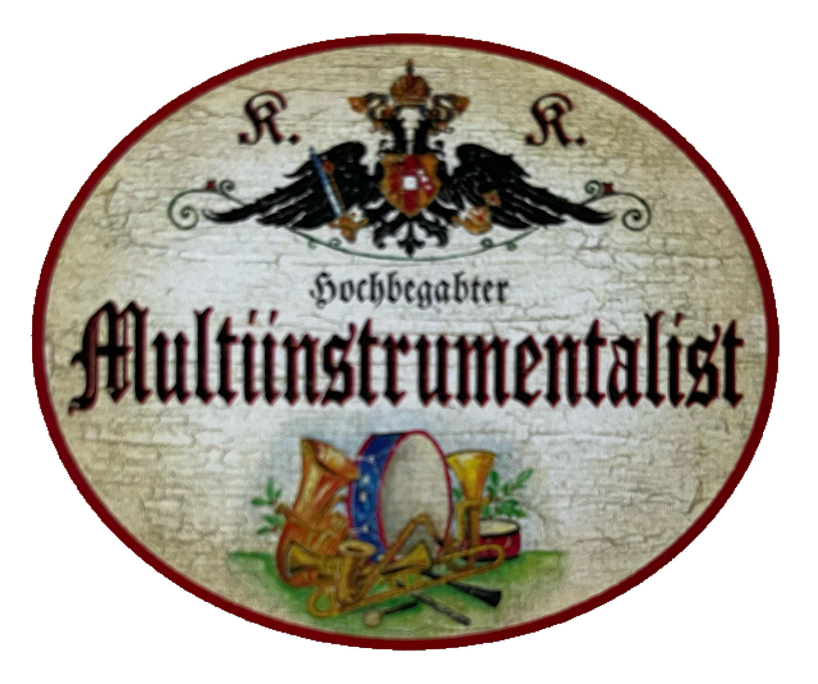 KuK Nostalgie Holzschild Hochbegabter Multiinstrumentalist Musiker Schild