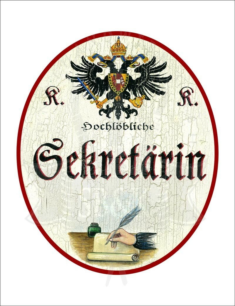 KuK Nostalgie Holzschild - Hochlöbliche Sekretärin - Feder Hand Papier TH