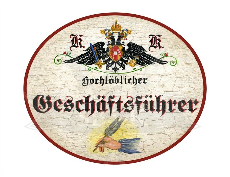 KuK Nostalgie Holzschild - Hochlöblicher Geschäftsführer - Feder Hand TH