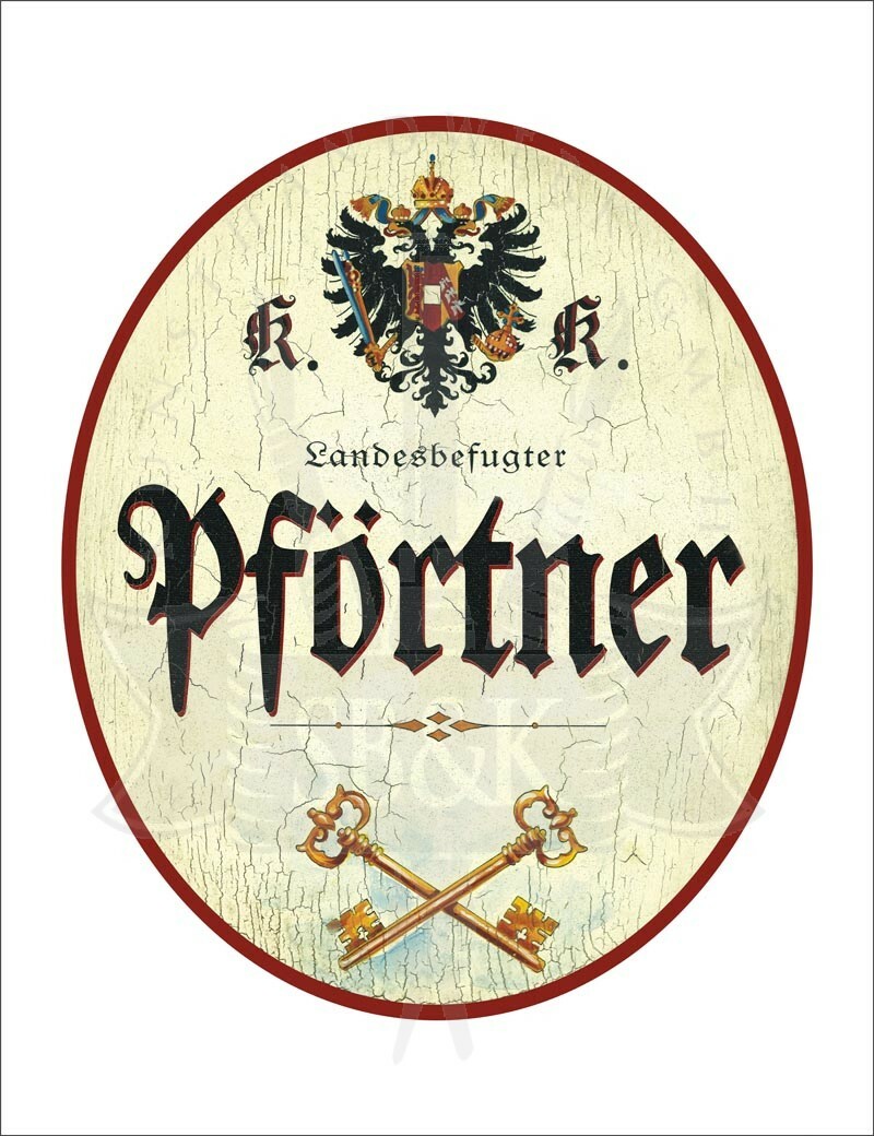 KuK Nostalgie Holzschild - Landesbefugter Pförtner - Schlüssel TH