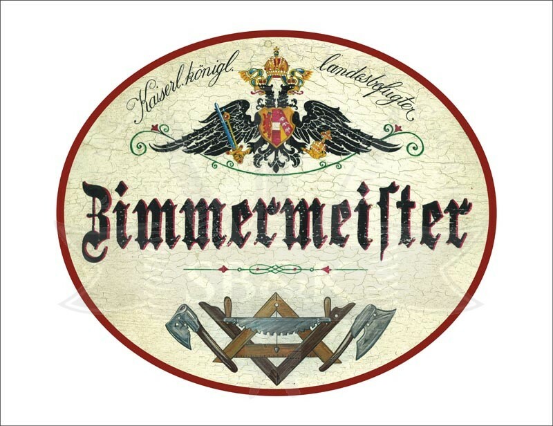 KuK Nostalgie Holzschild - Landesbefugter Zimmermeister - Werkzeuge Axt TH