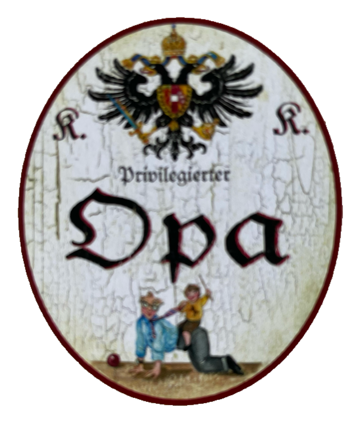 Unter dem stolzen K&K Doppeladler der Monarchie beeindruckt ein Titel wie Hochlöbliche/r, Landesbefugte/r oder kaiserlich privilegierte/r kombiniert mit Berufen, Hobbys, Sport oder anderen Passionen, und einem dazu passendem Symbol oder Bildmotiv. Auf Wunsch mit Namen, Jahreszahlen, etc. personalisiert, sind diese Schilder ideale Geschenke für die zahlreiche Anlässe: die bestandene Gesellen- oder Meisterprüfung, Diplom, Berufsjubiläen oder zum Eintritt in den wohlverdienten Ruhestand.