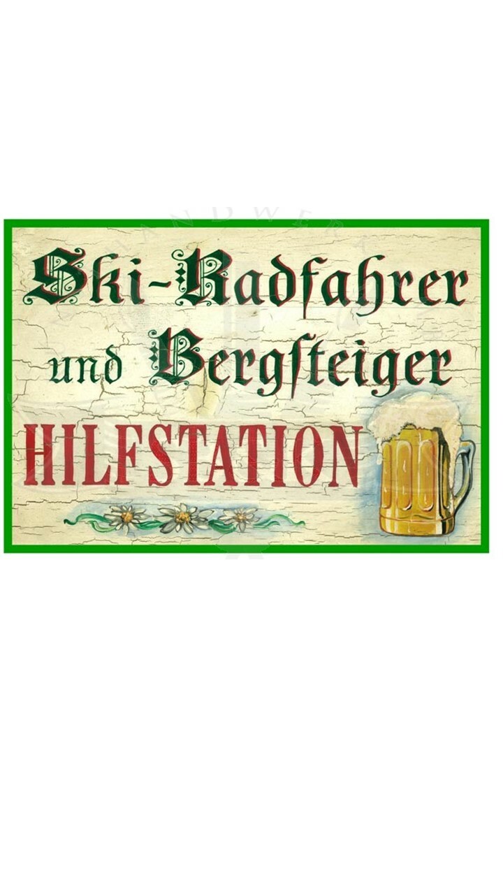 KuK Nostalgie Holzschild "Ski-Radfahrer und Bergsteiger Hilfstation"