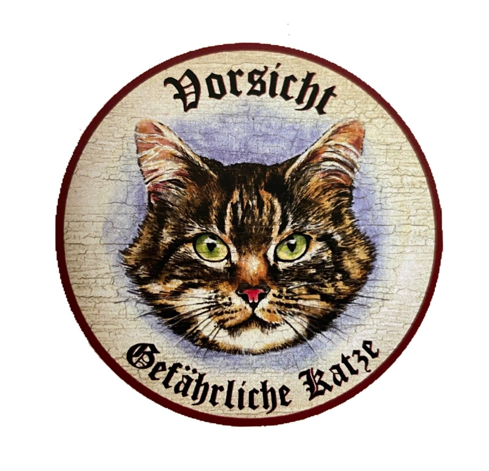 KuK Nostalgie Holzschild "Vorsicht Gefährliche Katze“ Tabby Getigert