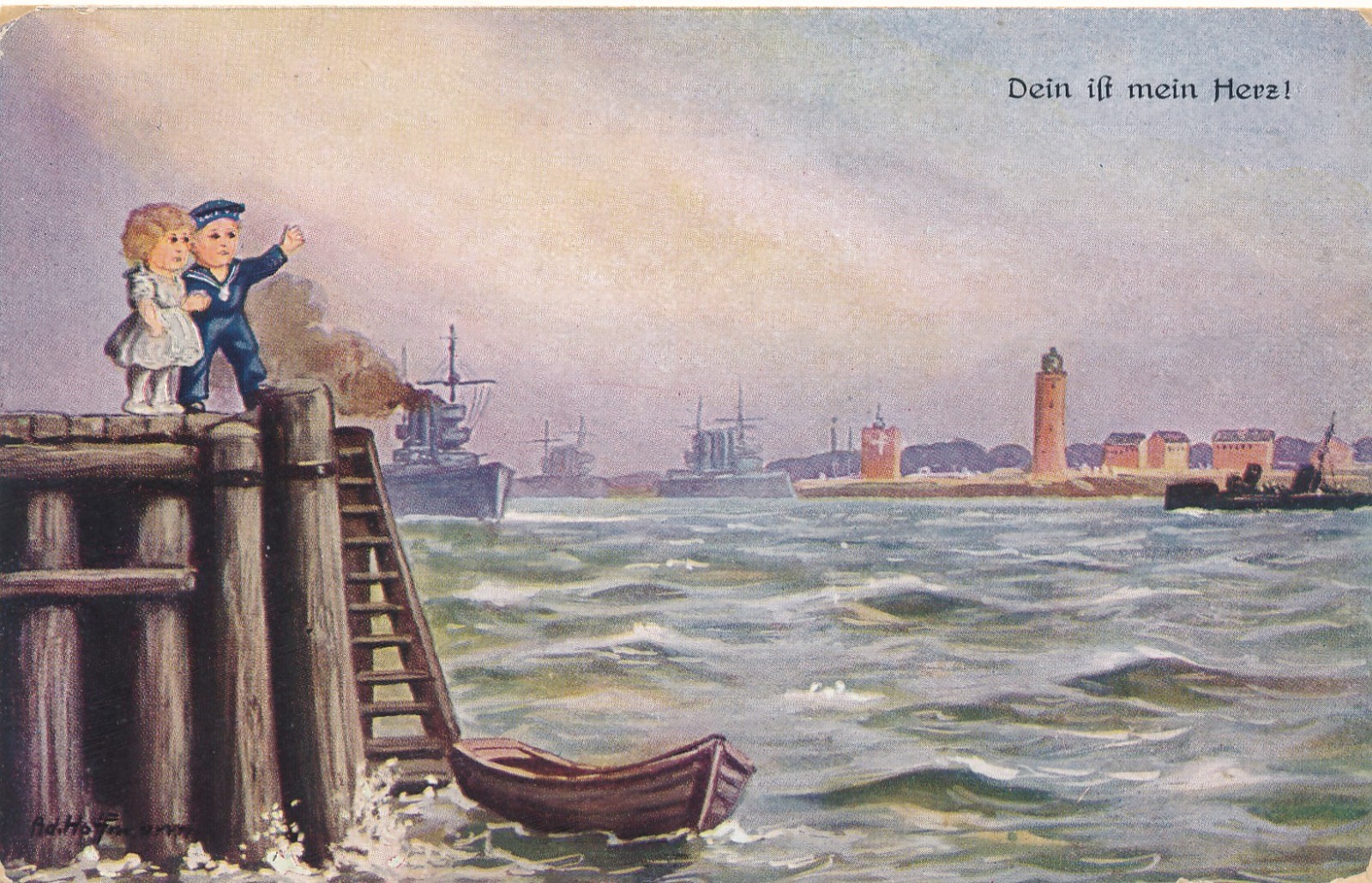 Künstler AK dein ist mein Herz Mädchen und Bub Ansichtskarte (18324)