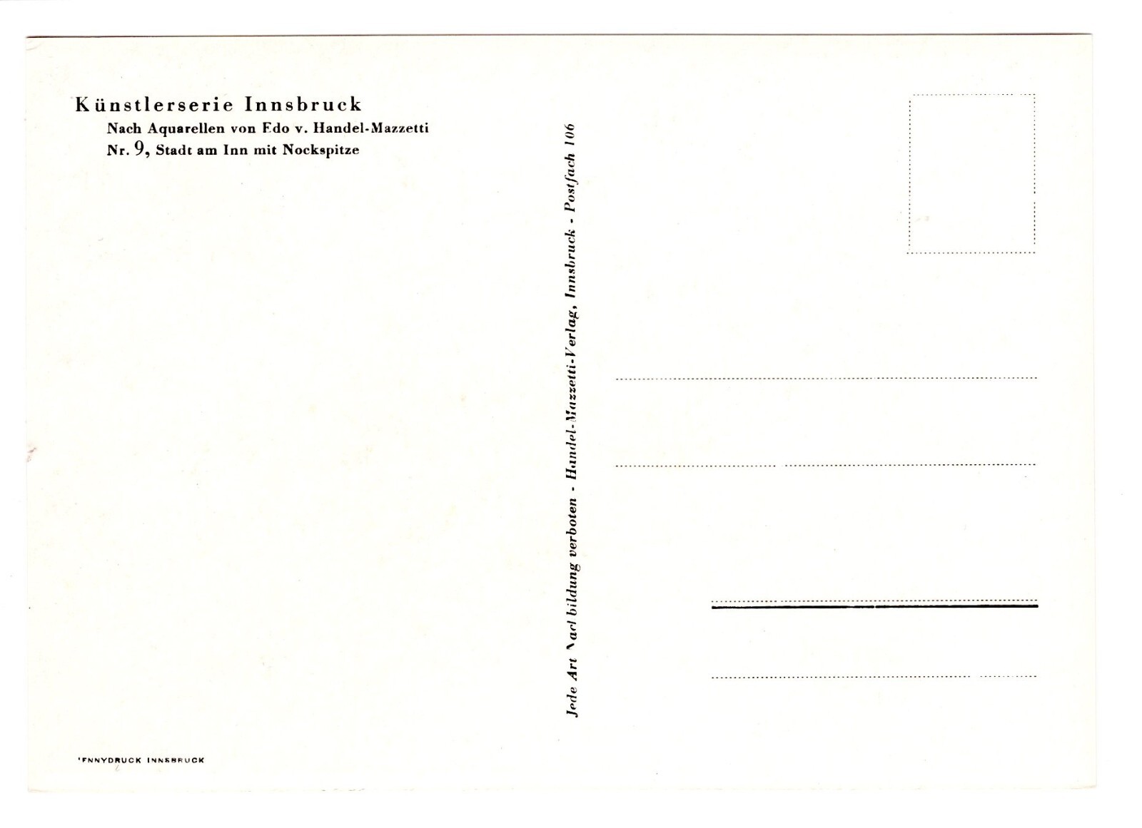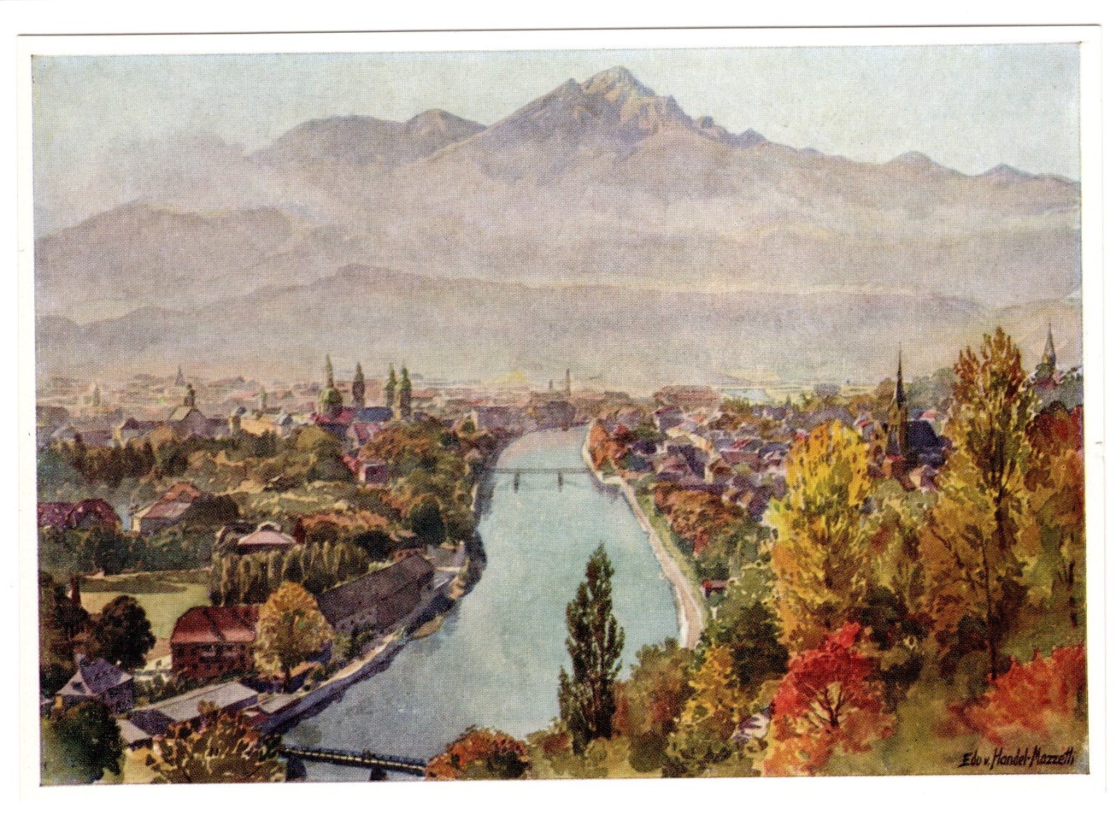 Künstler-AK, Handel-Mazzetti, Innsbruck, Nr. 9 Stadt am Inn mit Nockspit (S5028)