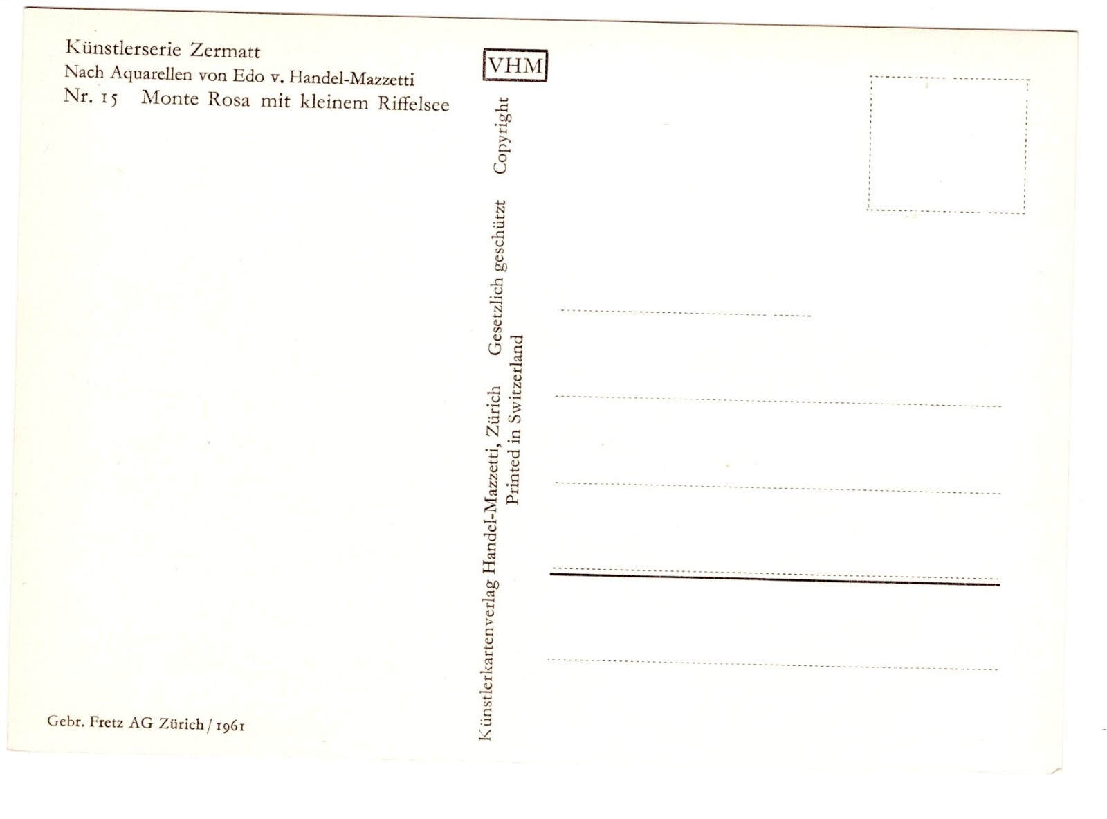 Künstler-AK, Handel-Mazzetti, Zermatt, Nr. 15 Monte Rosa mit kleinem Rif (S5035)