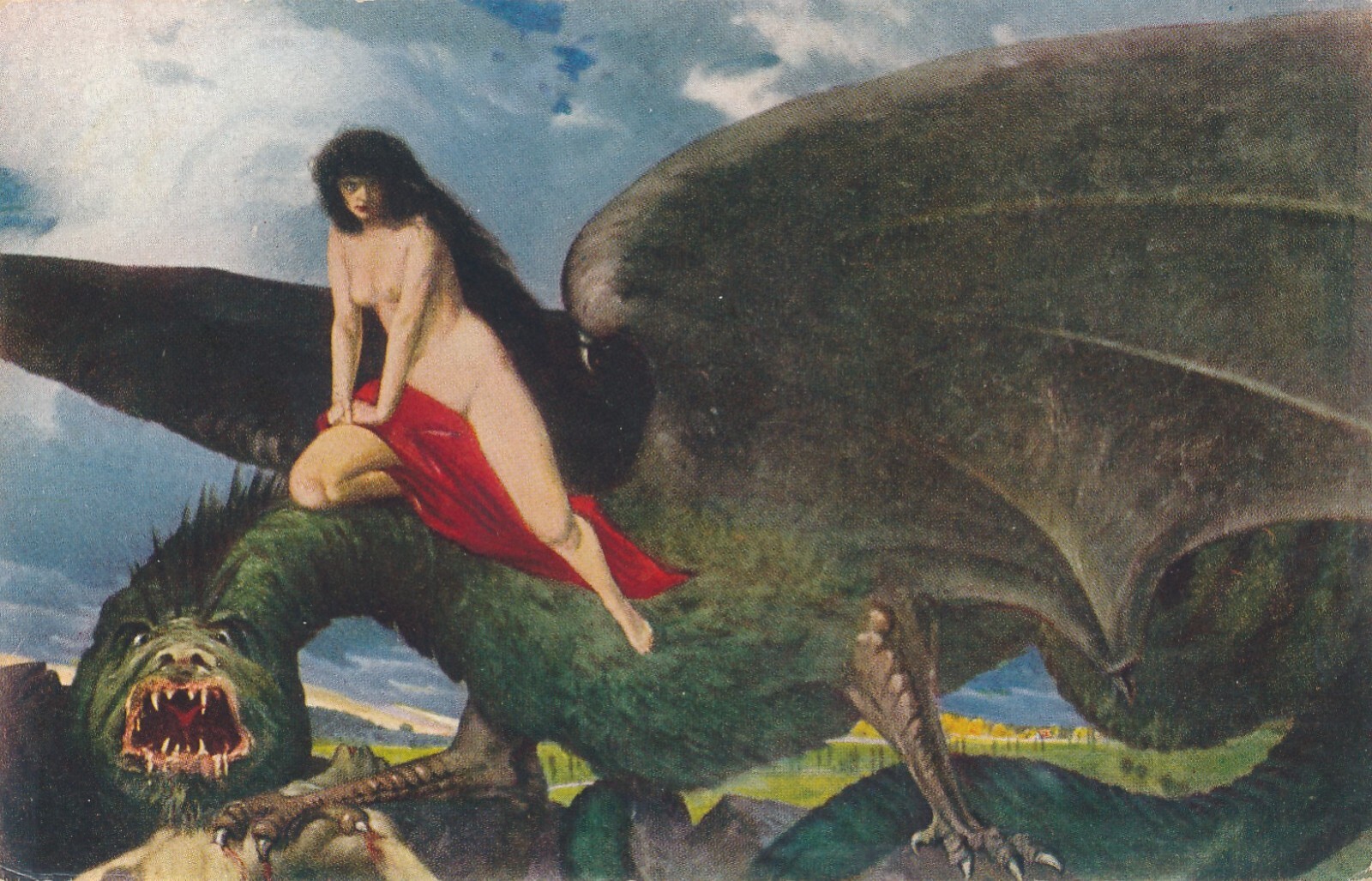 Künstlerische Sagen und Legenden Karte Dämon der Liebe Frau auf Drache (6501)