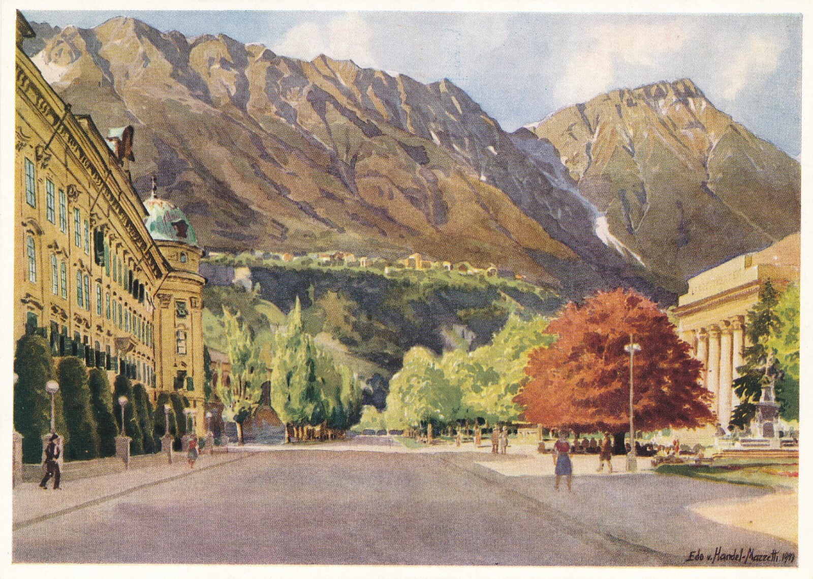 Künstlerkarte, Innsbruck, Rennweg gegen Hungerburg und Nordkette, Tirol (S1551)