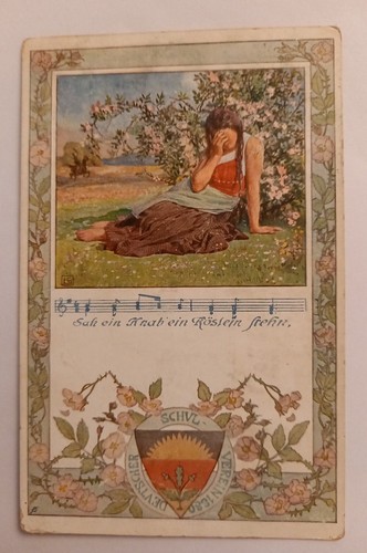 Künstlerkarte Sah ein Knab ein Röslein stehn Ortsgruppe Bardia 500094A gr D