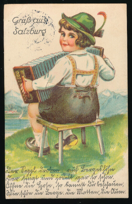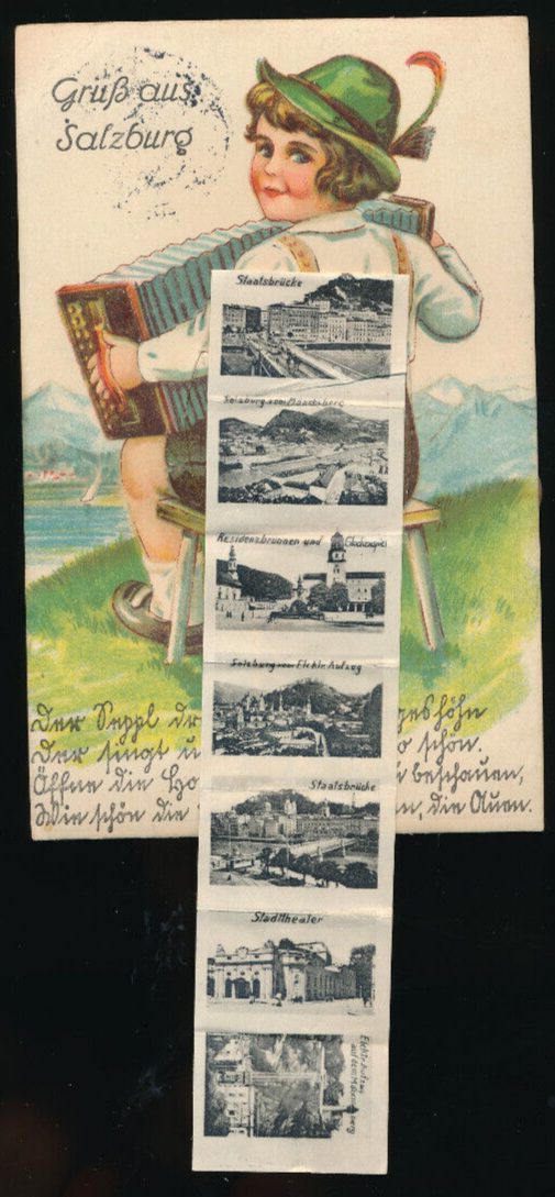 Leporello - Karte gruß aus Salzburg Mädchen mit Zieharmonika (5957)