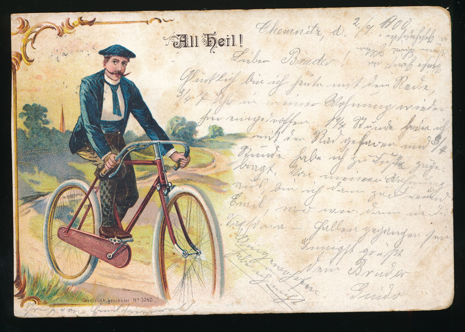 Litho-Karte All Heil Mann auf Fahrrad (366)