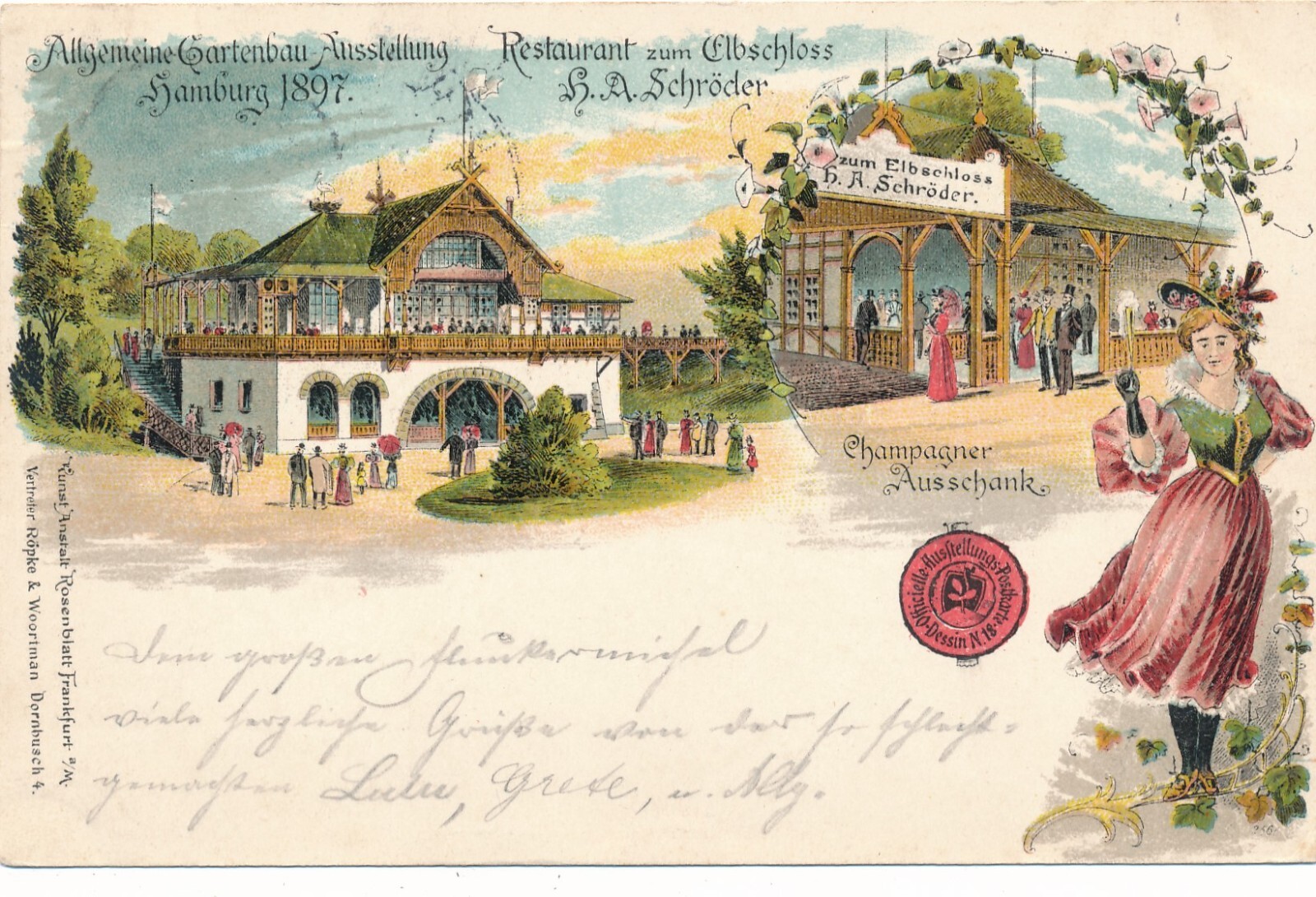 Litho - Karte Allgemeine Gartenbau Ausstell. Hamburg 1897 Ansichtskarte (10904)