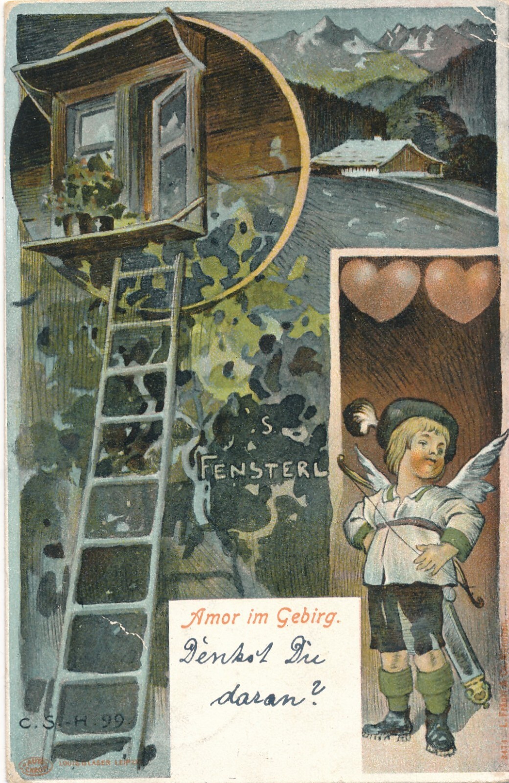 Litho - Karte Amor im Gebirge Ansichtskarte (8631)