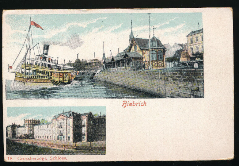 Litho - Karte aus Biebrich mit Dampfer Hessen (4512)