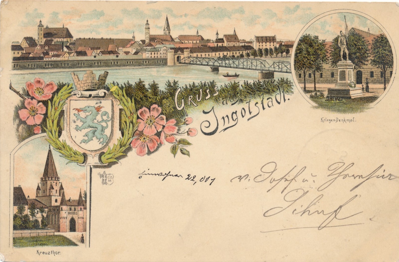 Litho - Karte aus Ingolstadt Bayern (7581)
