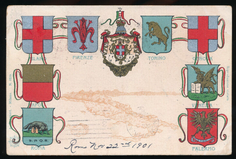 Litho - Karte aus Italien mit verschiedenen Städte Wappen wie Parlermo Rom(4884)