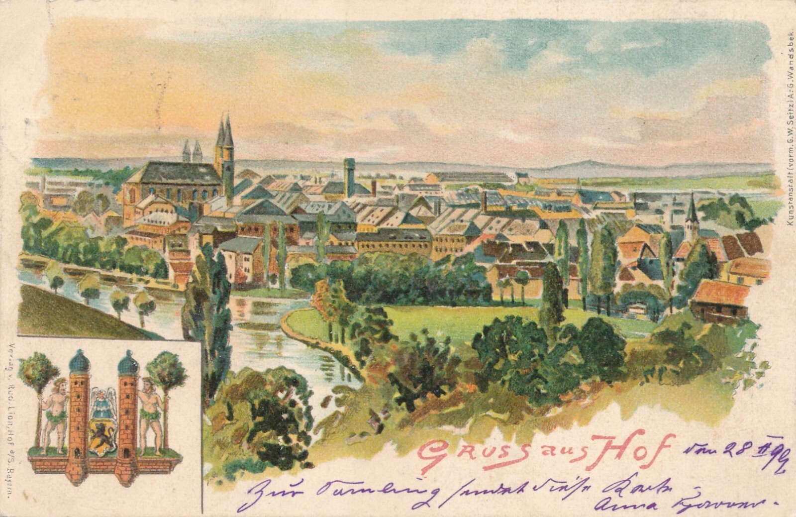 Litho - Karte gruss aus Hof Bayern (7584)
