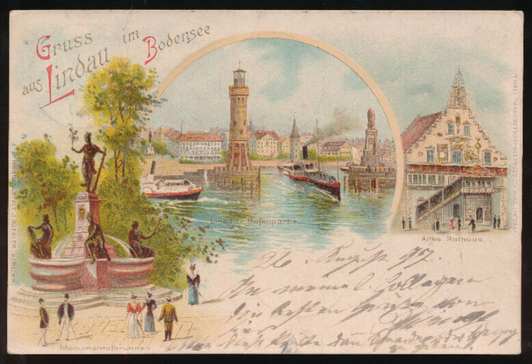 Litho-Karte gruss aus Lindau im Bodensee Bayern (884)