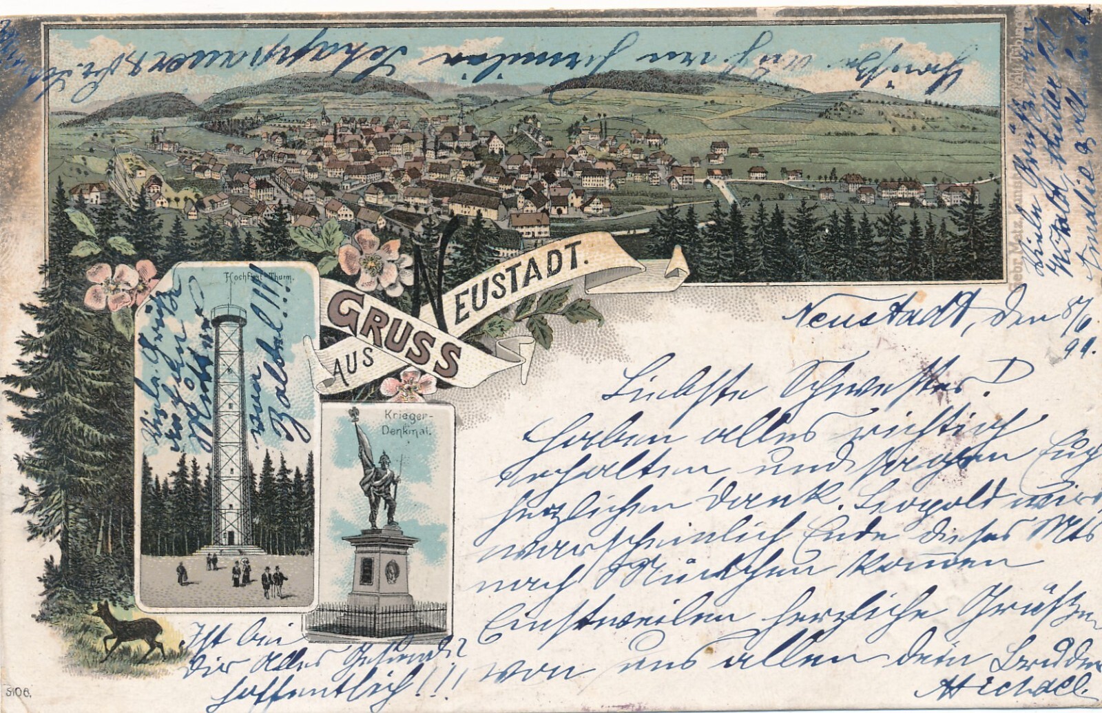 Litho - Karte gruss aus Neustadt Rheinland - Pfalz (7569)