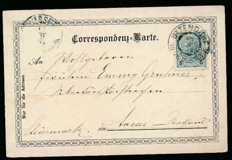2 Kreuzer - Ganzsachen - Karte 1877 aus Pilsen (10082)