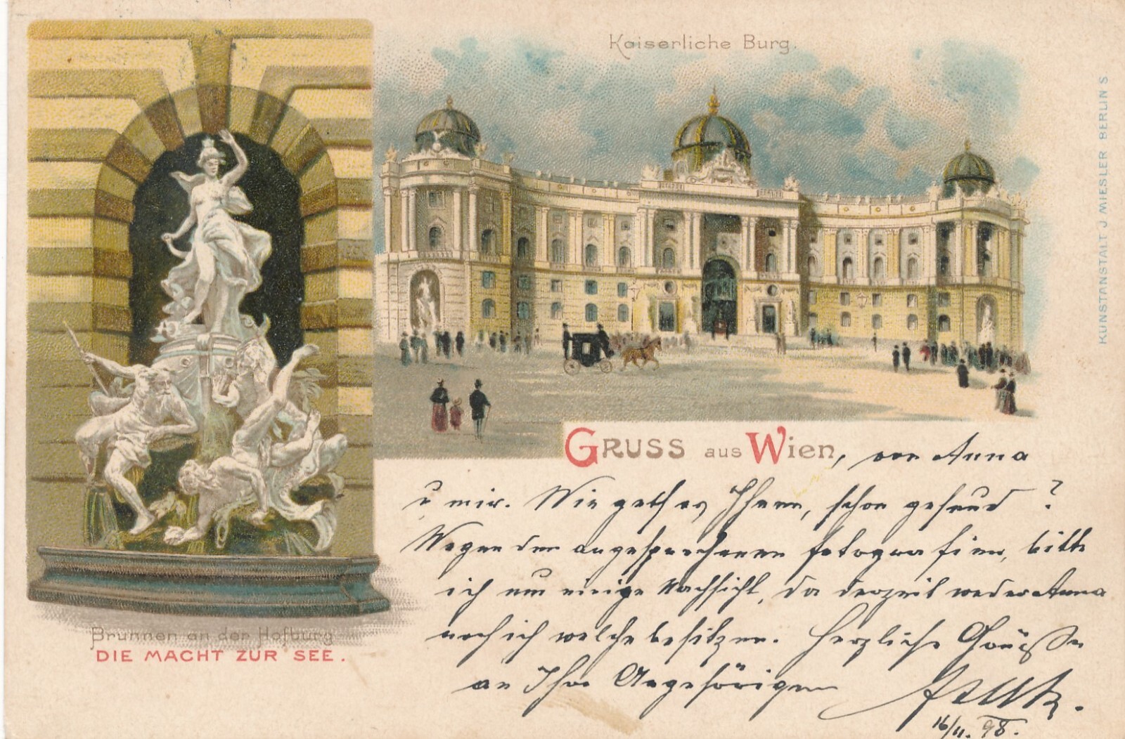 Litho - Karte gruss aus Wien die macht zur See Ansichtskarte (9426)